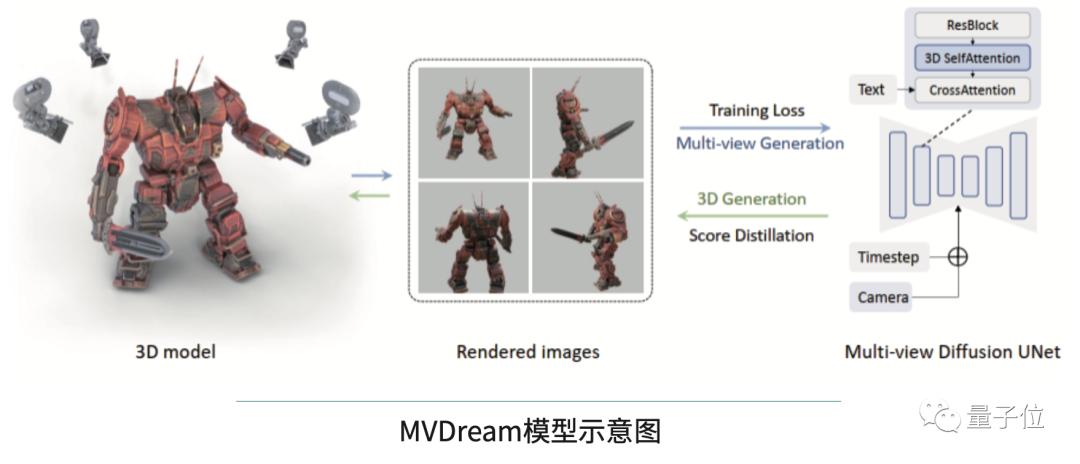 在今年10月,字节跳动的研究团队推出了一种全新的多视图扩散模型——MVDream,能够根据给定的文本提示生成几何上一致的多视图图像。这一新模型可以应用为3D生成的多视图先验,通过分数蒸馏抽样极大地提高了现有的2D提升方法的稳定性,大幅改善了3D一致性问题。