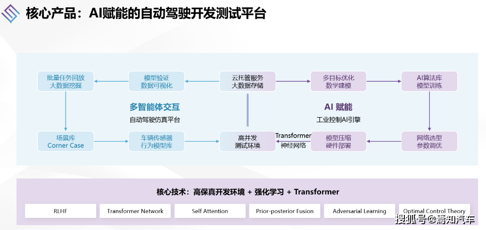 昇启科技则提出了针对性的解决方案,通过多智能体博弈、对抗学习,驱动智能体自我进化,并推出了AI赋能的自动驾驶开发测试平台,实现这一功能。该平台由两个数据飞轮组成,一个飞轮通过自动驾驶仿真平台实现多智能体交互,另一个飞轮驱动AI引擎实现端到端的训练,从而形成自动驾驶研发的“端到端+数据闭环”。