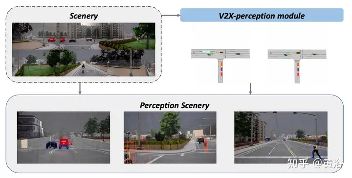 具体来说,在协作感知领域,从BEVerse和DeepAccident中汲取灵感,开发了V2X架构下的全局感知模块,称为V2X感知,如图所示。
