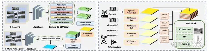 对于来自图像的输入数据,基于图像主干对每个图像进行预处理,提取不同的信息和特征。随后,由每辆车或每台设备中的环视摄像头捕获的信息被输入到cross-transformer网络中。此外,基于摄像头参数建立了一种摄像头-到-BEV,有助于将各种车辆或道路测试设备的信息转换为BEV的视角。