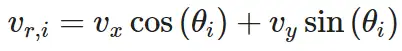 如下图 a 所示,预测线速度(vx,vy)与测量多普勒速度vr,i之间的关系为: