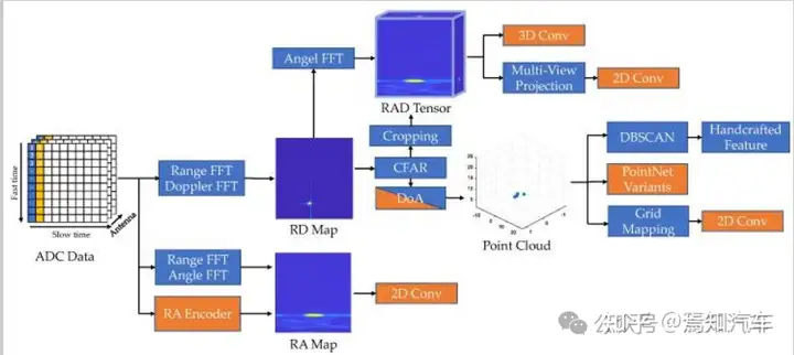 图5 雷达检测框架概述:蓝色框表示经典雷达检测模块。橙色框代表基于人工智能的替代。