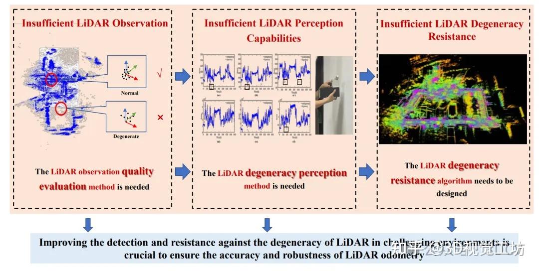 激光雷达对退化几何环境的适应性不足导致状态估计误差,给激光雷达SLAM带来挑战。现有的算法使用含义不明确的度量来确定激光雷达是否退化,这可以更有效地测量激光雷达的退化程度并解决激光雷达的退化问题。