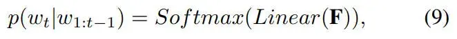 最后,预测出来的特征被送入到线性层和Softmax函数中生成词向量