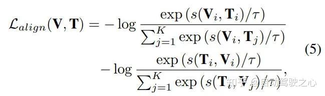 旨在将匹配的 VL 样本视为正样本,将不匹配的 VL 样本视为负样本。给定视觉特征和文本特征作为输入,对比损失定义为如下的形式。