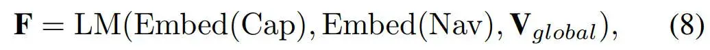 所提出的模型为自动驾驶汽车的当前状态制定语言提示,包括其高级驾驶命令和位置。信息提示被发送到文本嵌入层,以产生自动驾驶汽车的初始语言表示。同时,设计的场景字幕模型生成视觉描述(例如,交通信号灯、标志、关键物体和天气)。随后,环境视觉特征和提示特征被输入到语言模型中,以学习具有丰富驾驶场景和导航信息的规划特征。该过程可以表述为如下的形式
