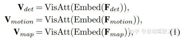 在提出的GPVL算法中,我们引入了驾驶场景中的三种目标,包括前景目标、代理运动和地图元素。我们首先利用视觉嵌入层来编码检测、运动以及地图特征到相同的通道维度。然后,引入了 Transformer 结构,通过长距离注意力机制
