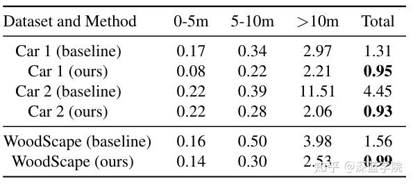 表1| 在不同距离处单帧标定结果的MDE(米制)
