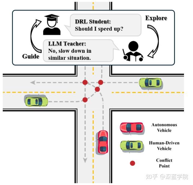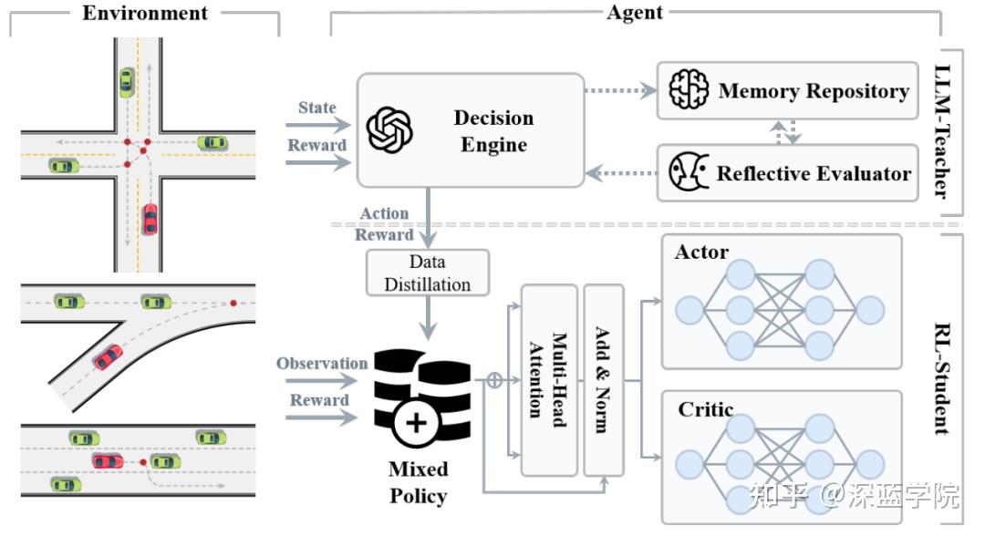 深度强化学习(DRL)已经成为自动驾驶系统决策的关键框架。在自动驾驶领域,DRL被用于开发车辆行为策略,例如路口导航等场景。然而,传统的DRL方法面临着一些挑战,包括数据需求量大、收敛速度慢,以及对环境理解能力有限等问题。这些限制严重影响了其在需要强适应性的动态驾驶场景中的可扩展性和效率。