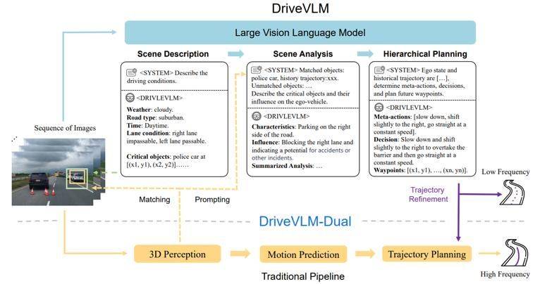 其中VLM的核心是一个LLM模型,也就是类似chatGPT的大语言模型。它有非常强的理解和逻辑推理能力,由大规模海量互联网数据预训练的LLM具备一定的通识认知,能够利用符合逻辑的推理能力获得复杂场景和从未见过的长尾场景的处理能力。