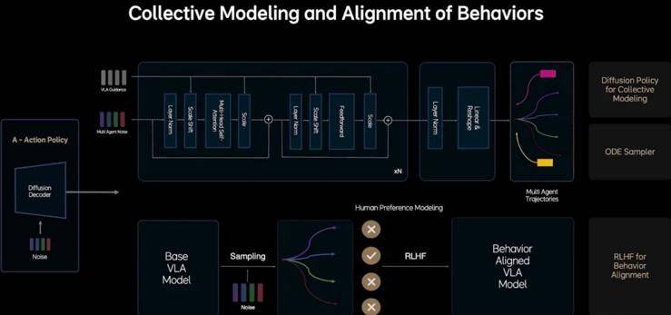 为了解决扩散模型生成效率低的问题,MindVLA使用了基于常微分方程的ODE采样器来加速生成过程,在2~3步内就可以生成稳定的轨迹。