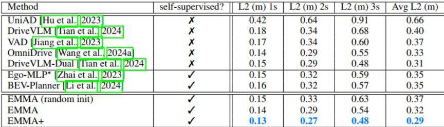 在nuScenes数据集的Planning Benchmark上,EMMA的表现经验,超过了传统端到端模型,如UniAD以及许多VLM模型,侧面证明了VLA在自动驾驶领域的潜力。