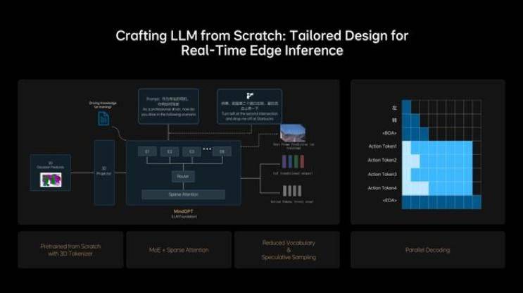 为了降低大模型在车端的计算需求,MindVLA采用了MoE混合专家架构和Sparse Attention(稀疏注意力)。