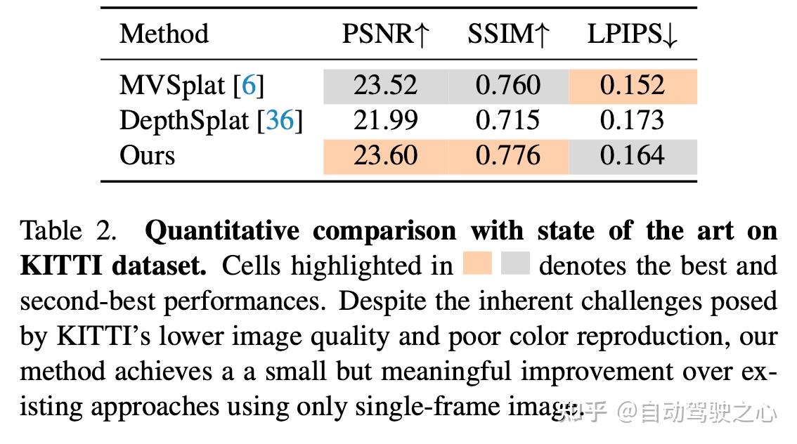 从表2可以看出,我们的方法在KITTI数据集上的性能提升不如在Waymo数据集上那么显著。这主要是由于KITTI数据集整体图像质量较低且色彩再现不佳。由于我们的方法仅依赖单张图像作为输入,因此相比之前的工作保留了较少的图像细节,这进一步限制了其在图像质量较差的数据集上的表现。