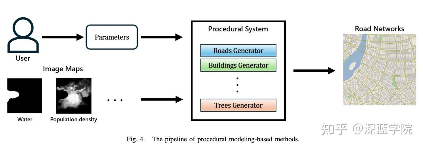 在输入城市的2D图像地图(例如地理地图和统计地图)后,这些方法生成了包含建筑物、道路网络和其它城市特征的虚拟城市地图。交互式参数调整使得用户能够根据特定要求来优化结果。