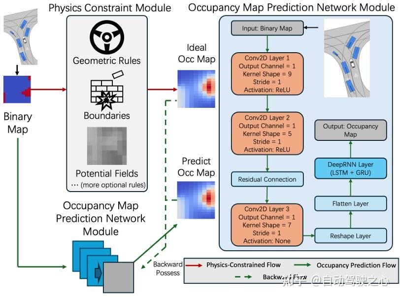 - 最小化预测占位图与物理理想占位图间的均方误差(MSE),实现数据与物理规则的联合优化。