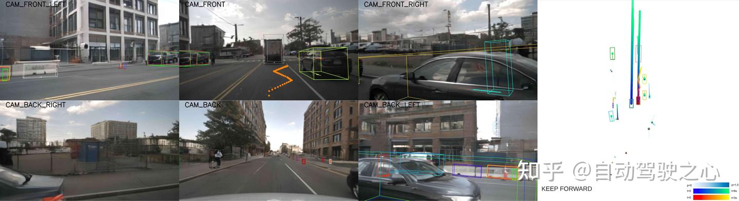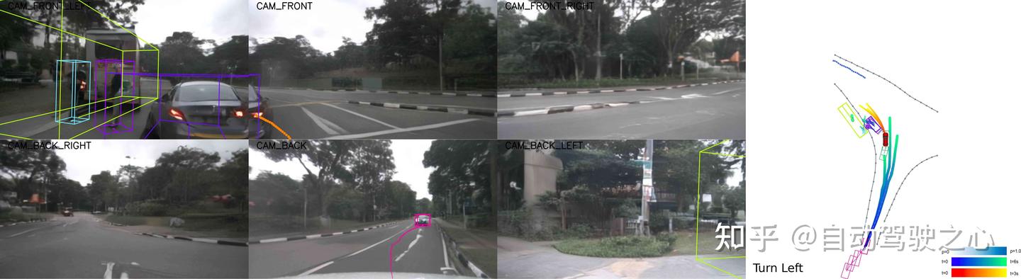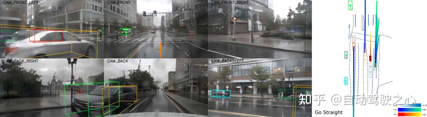 本研究基于nuScenes数据集构建实验环境。nuScenes是一个大规模的多模态感知数据集,包含1000 个场景,每个场景时长为 20 秒,标注频率为2Hz,含有车辆、行人等物体的3D边界框(3D bounding boxes)标注,是当前端到端自动驾驶研究中的常用数据集。