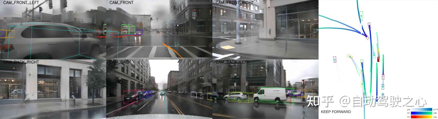 最终,Challenger使用MagicDriveDiT作为神经渲染器,将生成的BEV轨迹与3D包围盒转化为六视角真实感视频。其具备:
