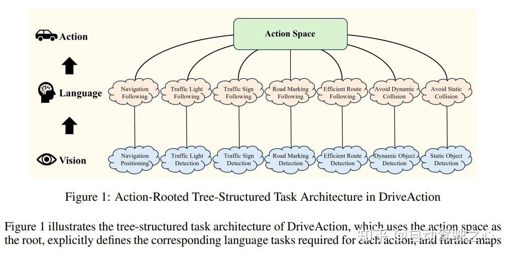DriveAction引入了以动作为根的树状结构评估框架,该框架基于动作决策动态映射所需的视觉和语言任务,通过整合丰富的context场景信息,确保模型决策在完整、现实的环境中进行。