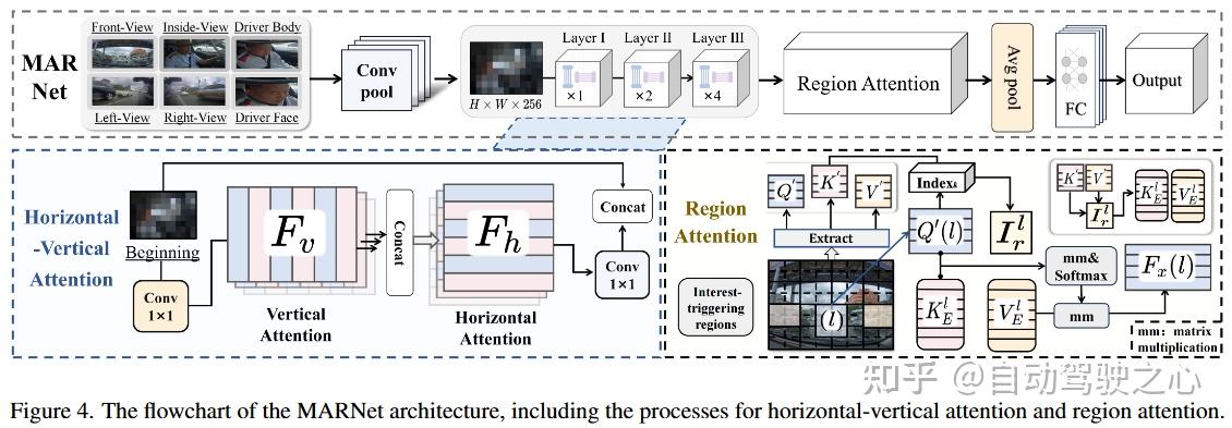 驾驶环境与驾驶员的多视角图像中通常包含大量与任务无关的特征,如路边广告牌、车内装饰物等。在多任务学习中,所提取特征的质量将直接影响任务间的协同效果。若能有效筛选出与任务相关的特征,将有助于在特征共享过程中实现信息互补;反之,则可能引发负迁移问题。为应对此挑战,本文设计了 MARNet(见图4)。该网络通过引入水平-垂直注意力机制与区域注意力机制,从多视角图像中提取与任务相关的关键特征,从而缓解由于无关特征引起的任务间负迁移问题。