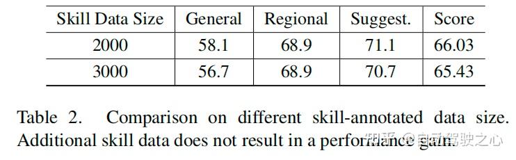 鉴于所提出的 MoSE 相比于原始 MoE 依赖于一小部分标注数据,我们可能会想知道这一额外需求是否会限制模型在其他数据集或任务中的适用性,或者是否会影响其可扩展性。为了解决这个问题,我们设计了实验来证明 MoSE 并不依赖大规模的额外数据进行预训练,而是只需要一个极小的子集。在表 2 所示的实验中,我们分别使用 2000 和 3000 个技能标注样本对模型的路由器进行预训练。结果表明,进一步扩大技能数据集不会带来额外的性能提升,从而确认 MoSE 不受需要大量额外标注的限制。
