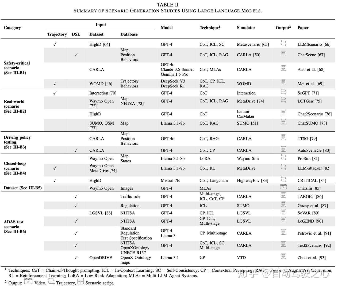 总体而言,基于大语言模型(LLM)的场景评估仍然依赖于高消耗的提示词(token-heavy prompting)和人工设计的提示(handcrafted prompts)。新兴的推理模型,如OpenAI o1DeepSeek-R1