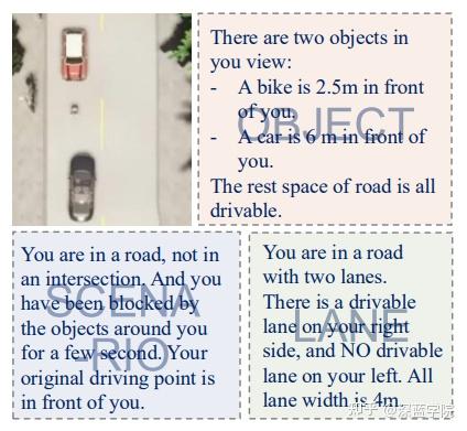 本文为了利用大语言模型实现更加可靠、精准的决策,所设计的编码器可以处理两个不同的输入流。一个是来自E2E系统的感知输出,包括检测到的目标、交通信号和部分道路特征。另一个是从高清地图中提取的车道级定位数据,用于提供自车定位和决策空间约束。