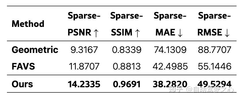 上进行实验,该数据集包含1,000个场景,通过使用原始六个相机为激光雷达点云着色并将其投影到目标视角以生成稀疏参考点,我们为外推视角构建了定量评估基准。