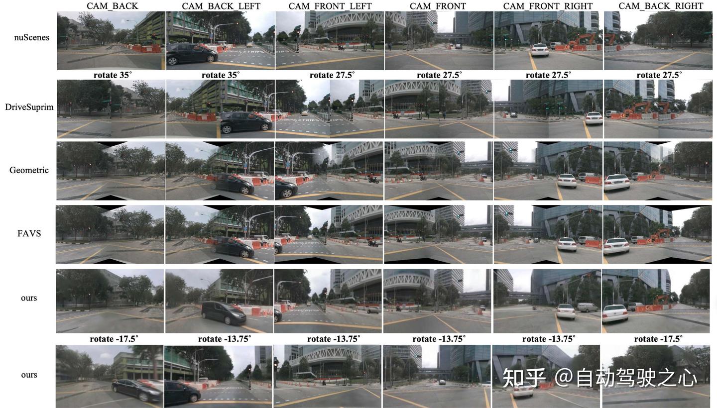 由于ArbiViewGen针对跨不同车辆平台的可控任意视角生成,没有先前方法提供直接可比性。我们采用应用基于旋转增强的DriveSuprim