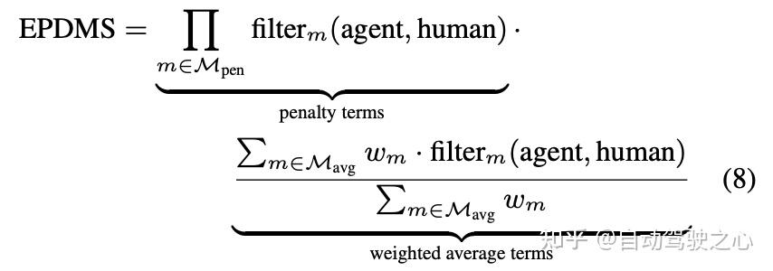 NAVSIM基准测试提供了一个非交互式仿真环境,并采用扩展预测驾驶员模型分数(Extend Predictive Driver Model Score, EPDMS)作为其闭环规划指标: