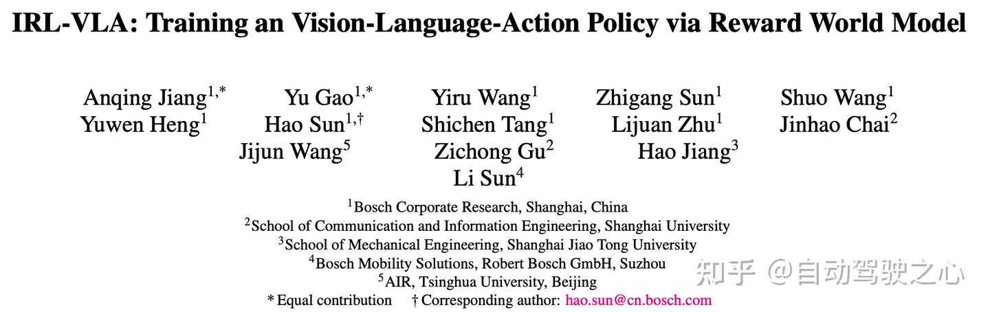 2025-08-13 自驾VLA再升级!博世最新IRL-VLA:奖励世界模型打造全新闭环强化学习框架