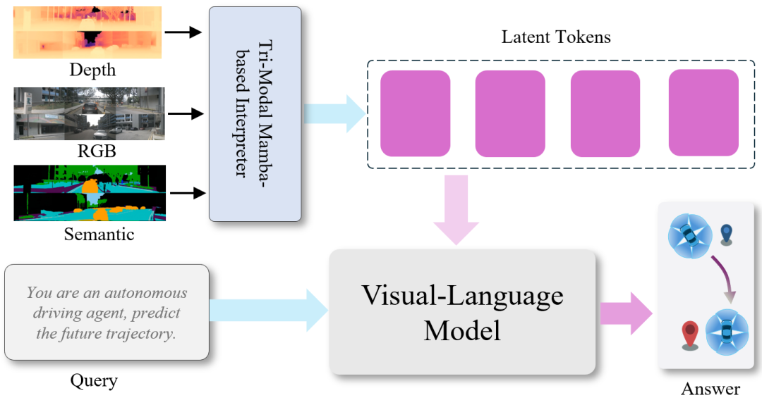 通过模态特定 MLP 投影至共享空间:再由 Mamba 状态空间模型 进行跨模态融合(受文本查询 引导): - 结构化输出