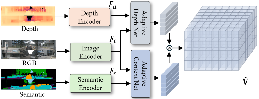 利用生成的 RGB、语义、深度图,通过 SE3D Block + Outer Product 生成 3D Occupancy: