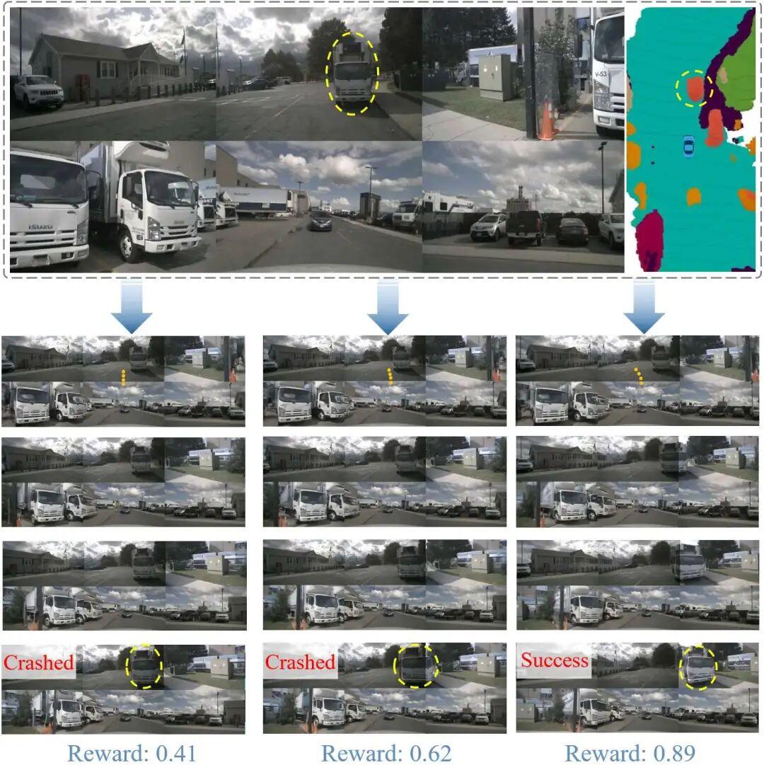 - 奖励(Reward)的缺失:有效的奖励函数是评估和优化驾驶策略的关键。然而,大多数世界模型缺乏一个集成、统一的奖励机制。部分研究虽提出了基于外部图像模型的奖励函数,但这不仅增加了系统复杂度,也难以在复杂的驾驶环境中提供精确的评估。