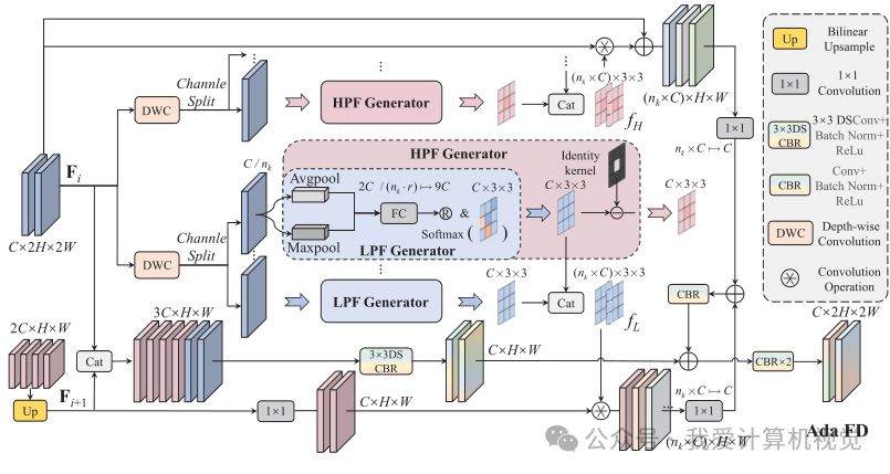 为此,作者设计了自适应频率解耦融合(Adaptive Frequency-Decoupled Fusion, AdaFD)模块。