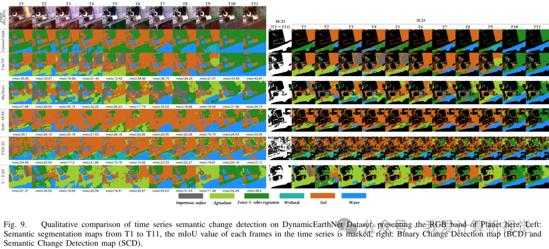 以下是时间序列语义变化检测在 DynamicEarthNet 数据集上的定量比较结果。