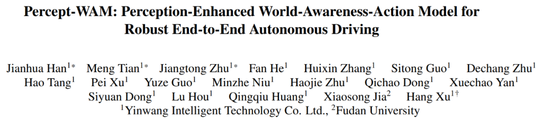 - 论文标题:Percept-WAM: Perception-Enhanced World-Awareness-Action Model for Robust End-to-End Autonomous Driving