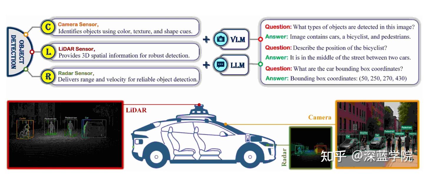 ”转型的趋势。过去目标检测的处理链路主要包括图像或点云的几何建模,而近两年研究者将语言模型(LLM)与视觉语言模型(VLM)引入自动驾驶系统,希望通过更强的语义理解能力来弥补传统模型在高层推理方面的不足。