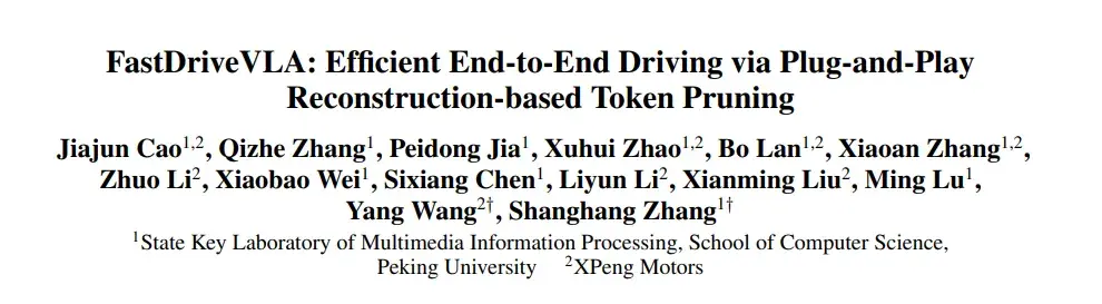 - 论文标题:FastDriveVLA: Efficient End-to-End Driving via Plug-and-Play Reconstruction-based Token Pruning