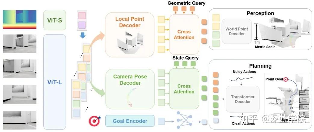 - 长序列视觉状态估计:不只看一帧,而是“吃”进一段历史观测,从中提取“像定位一样”的状态表征,并把它锚定到真实尺度。