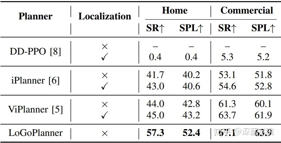 从结果趋势看,LoGoPlanner 的优势主要体现在两点: