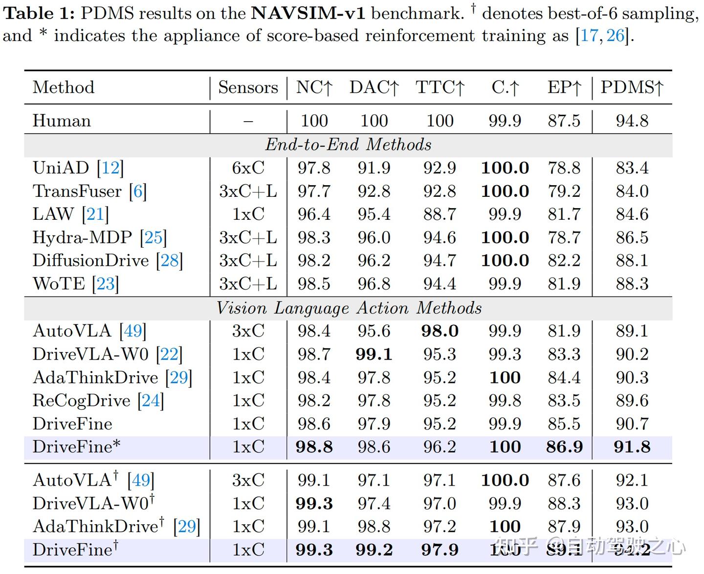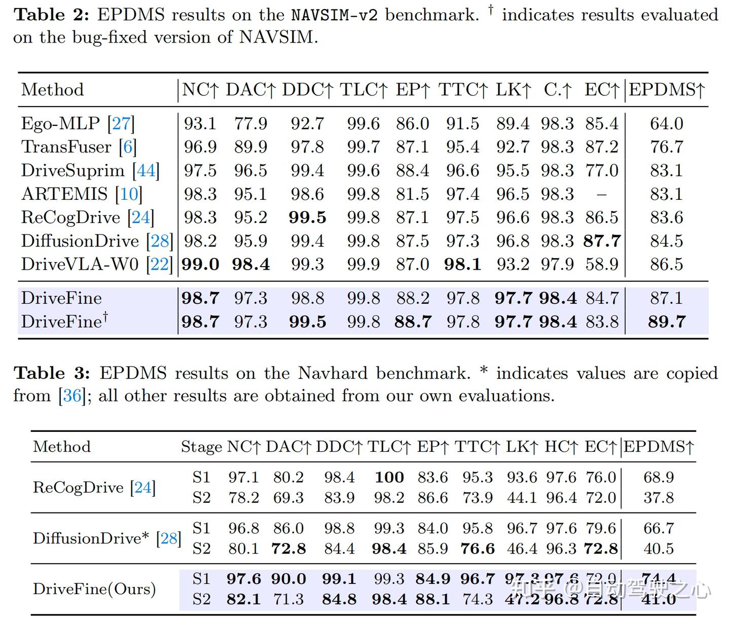 - 大量实验表明,DriveFine在NavSim v1、v2和Navhard基准数据集上均持续取得当前最优(SOTA)性能。