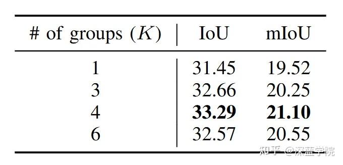 GATF的分组数K=4被实验证明是最优配置,过少(K=1,即无分组)或过多(K=6)均会导致性能下降,印证了”适度分组、语义粒度一致”这一设计原则的合理性。